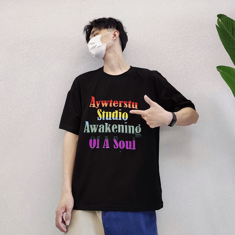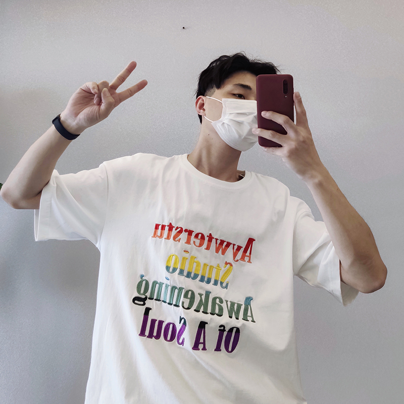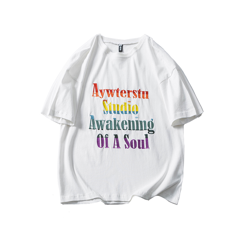 PGUP STUDIO summer net red fried street tide brand color letter embroidery loose short-sleeved T-shirt men's half-sleeved Tee