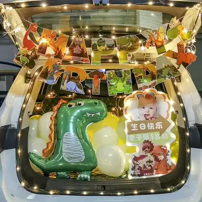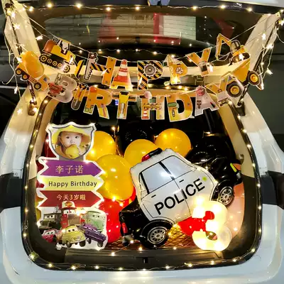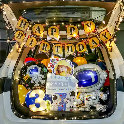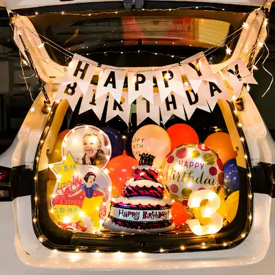 Car trunk surprise birthday boy daughter tail box cartoon balloon gift children creative scene decoration layout