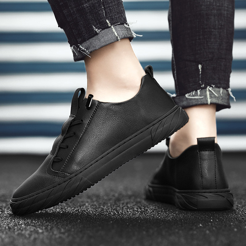 Chefs Shoes Waterproof Non-slip Kitchen Worko Pao Men Shoes Spring Full Black Board Shoes Soft-bottom Men Casual Leather Shoes