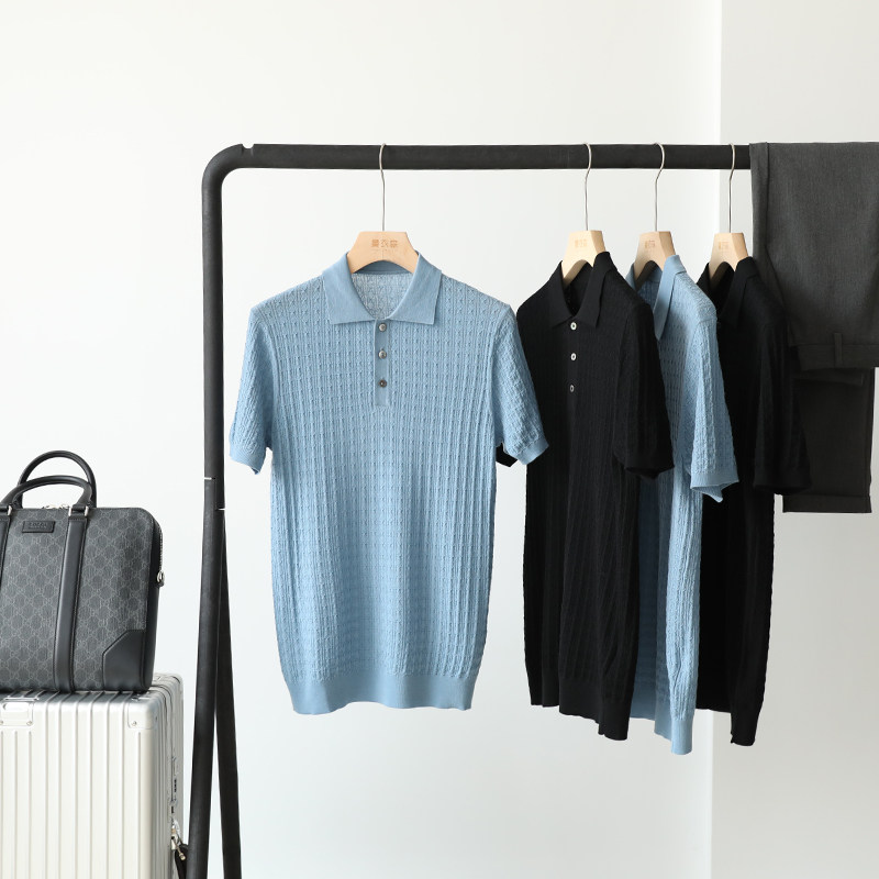 Town store's treasure 80 fine pure wool men's business high-end casual knit short sleeves Polo shirt 5784