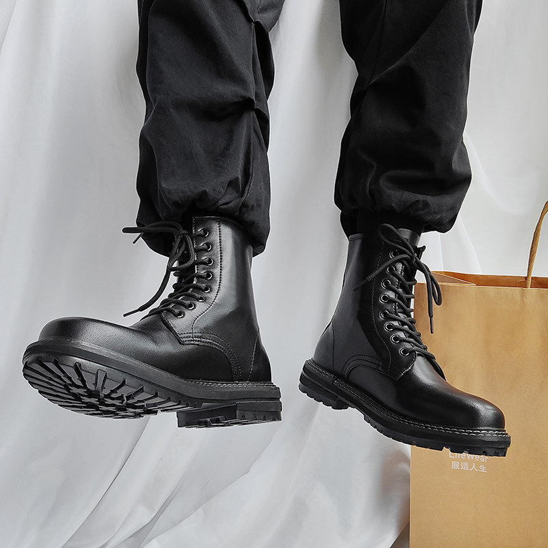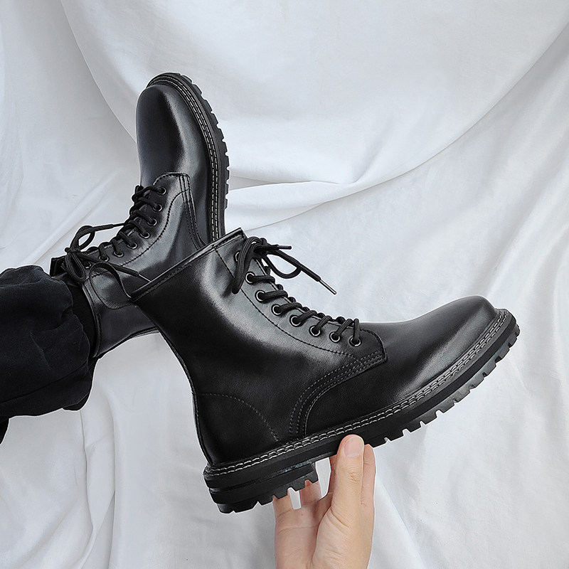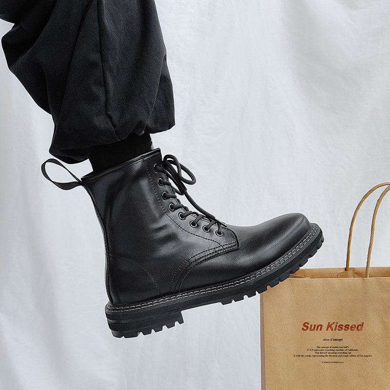 Genuine leather high-top eight-hole Martin boots men's ins locomotive handsome trendy Hong Kong style black all-match British tooling leather boots
