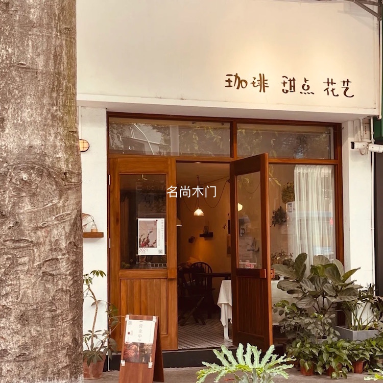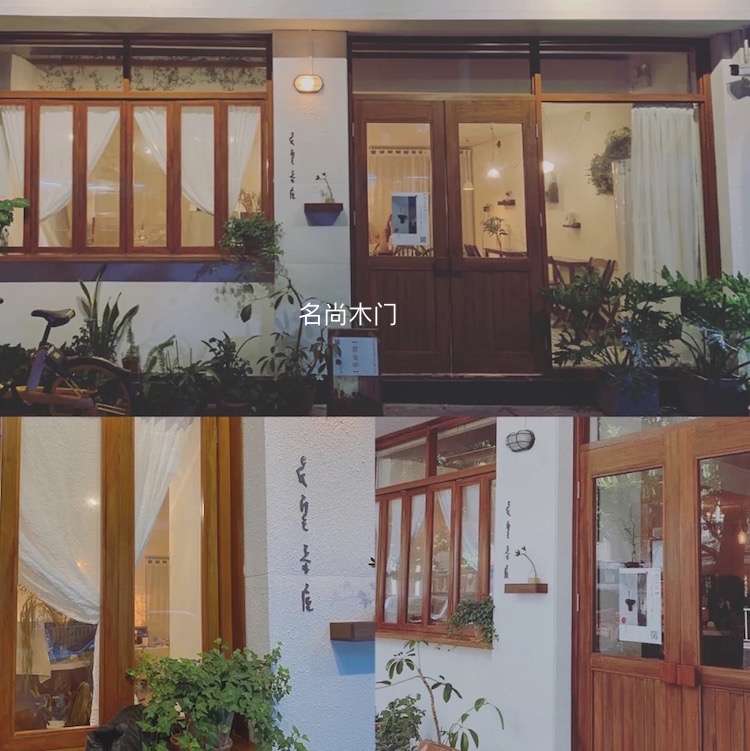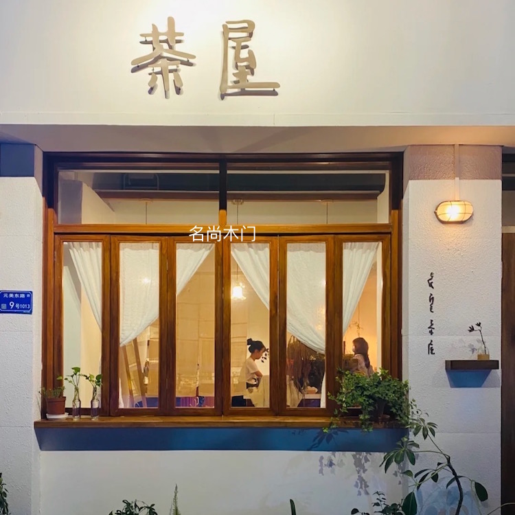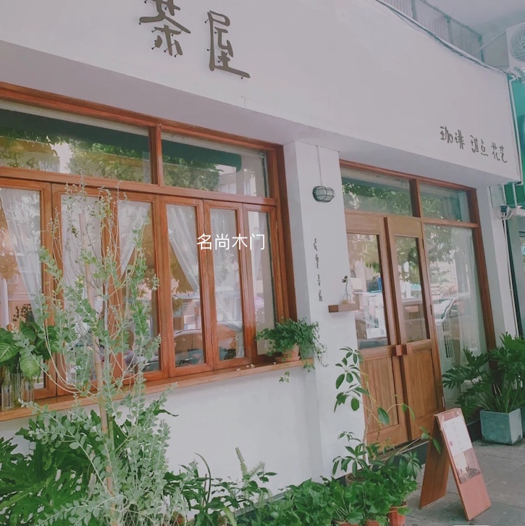 Custom pine solid wood casement door and window combination coffee shop flower shop bakery restaurant shop glass wooden door