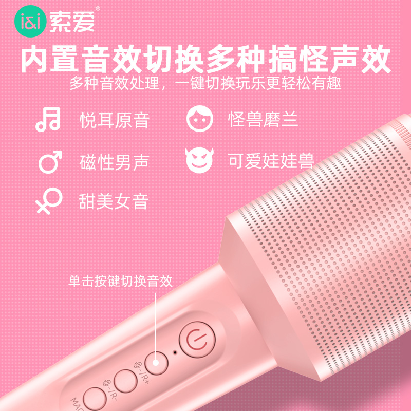 Soai Children's Microphone Stereo Integrated Microphone Wireless Bluetooth Home Karaoke Singing Sound Card Mobile Phone Live Dedicated Baby Girl TV Family KTV National K Song Artifact Host