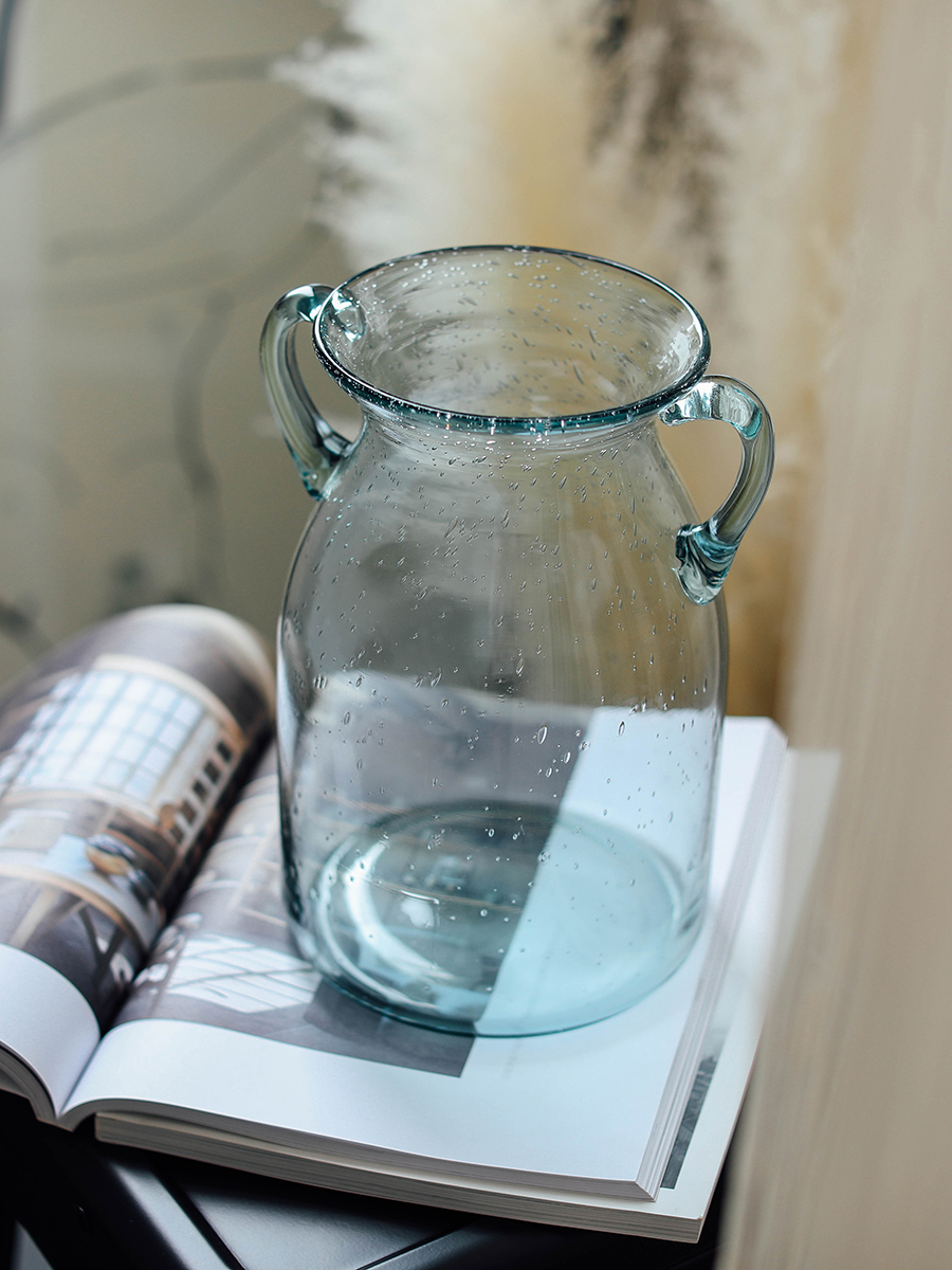 Nordic ins binaural glass vase bubble wide mouth hand-blown transparent flower arrangement water flower planter living room dining table