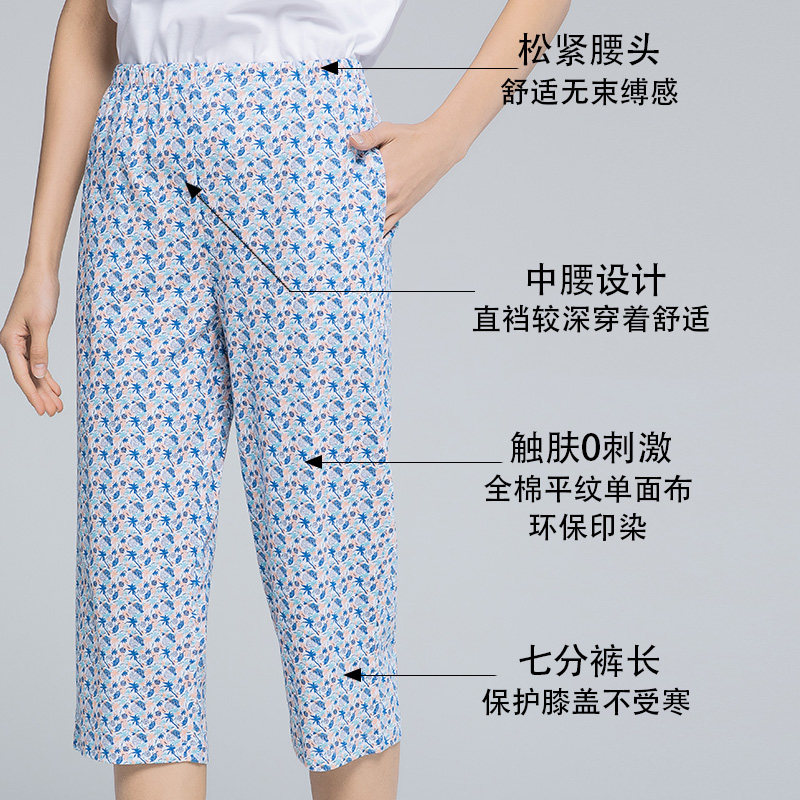 Workers, peasants and soldiers summer thin cotton women's floral seven-point pajamas pure cotton middle-aged high-waisted loose large size home flower pants