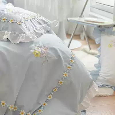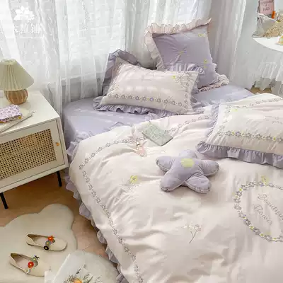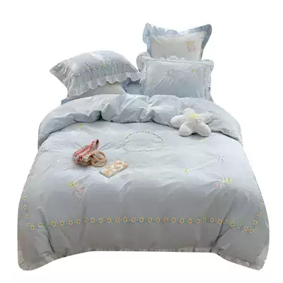 Girl Heart Flower Embroidery Cotton Water Washing Cotton Four Piece Set Spring and Autumn Cotton hipster Soft Nude Sleeping Bedding