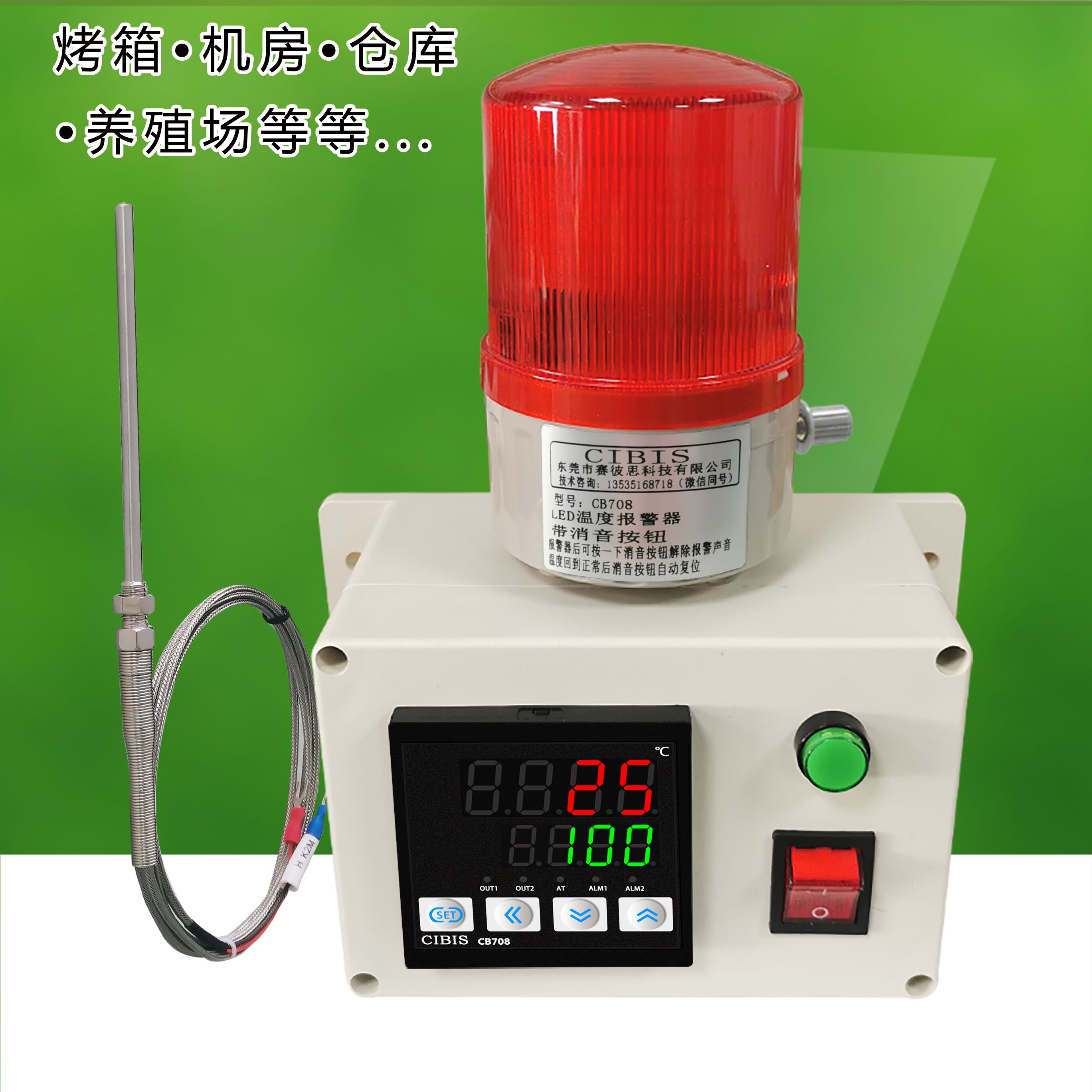 Temperature siren high and low temperature upper and lower limit sound and light integrated farm machine room oven overtemperature siren CB708