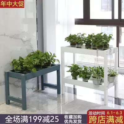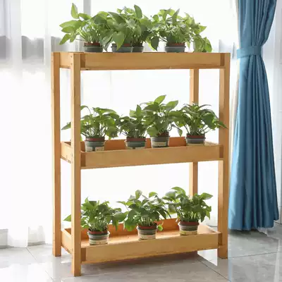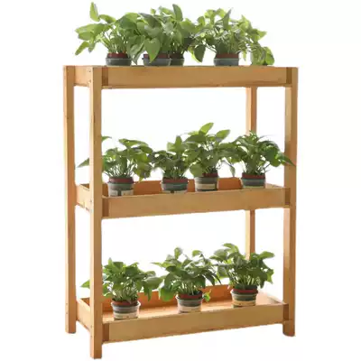Anti-corrosion wood shelf solid wood shelf indoor balcony gold Ge basin succulents multi-layer floor standing