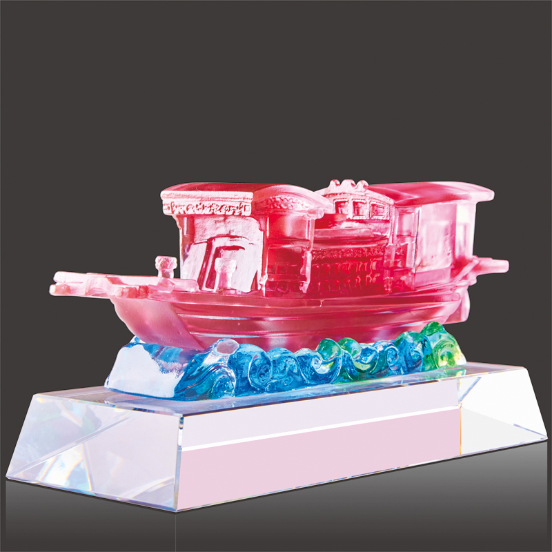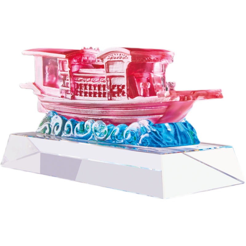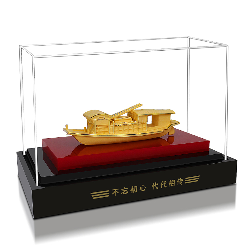 Jiaxing Nanhu glazed velvet sand golden red boat model commemorative three-dimensional ornaments museum party member souvenir customization