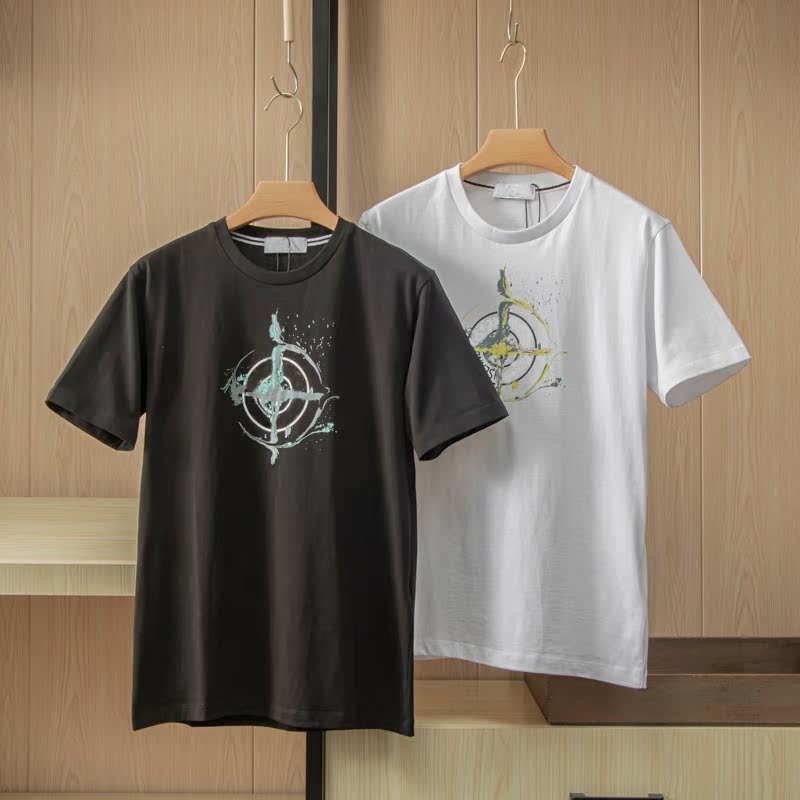 Euroline Outdoor Tide Card Men 240g Egypt Long Suede Cotton Ink Graffiti Sea God Series Round Collar Short Sleeve T-shirt