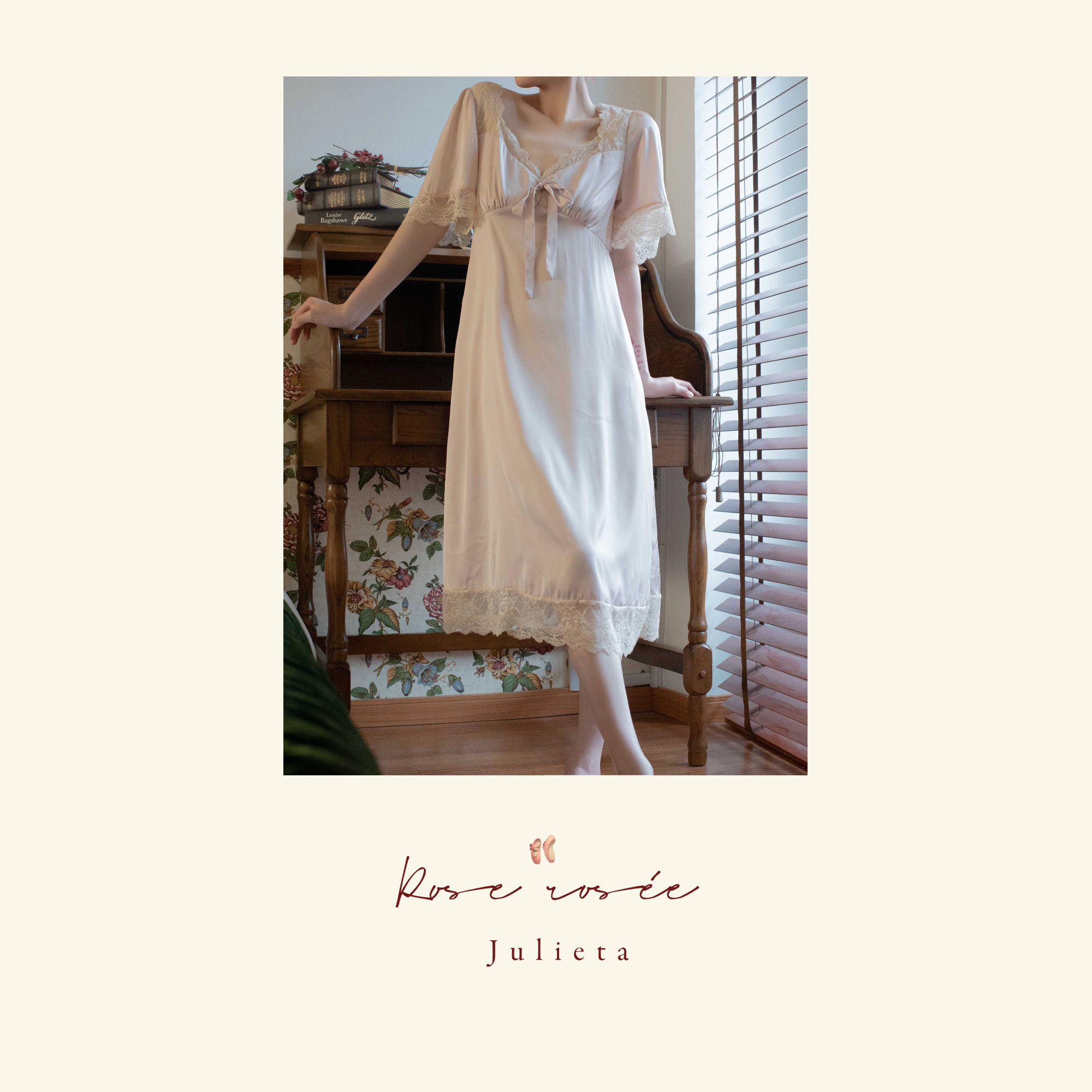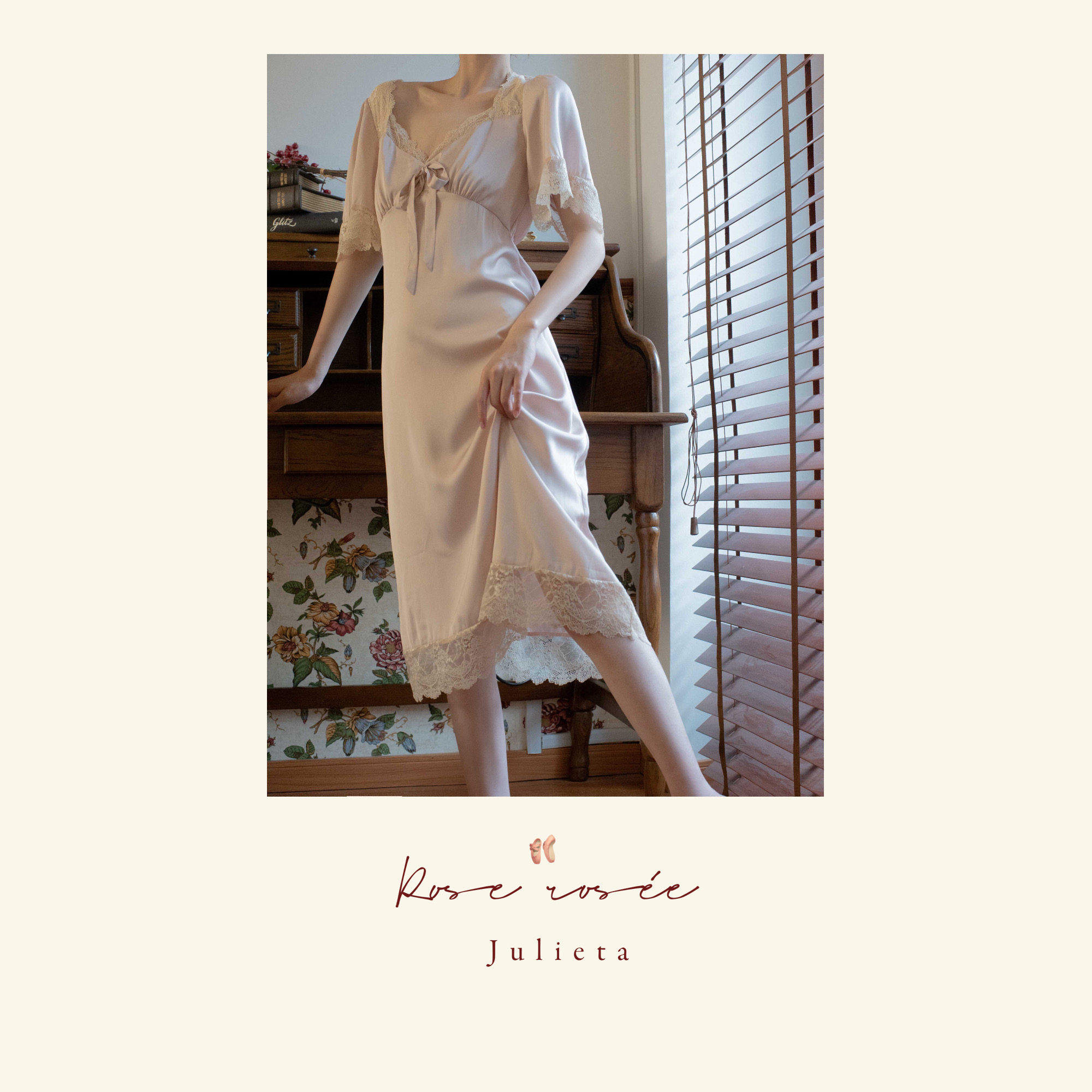 Roserosees Juliette Tower new bridesmaid morning gown harness sleeping dress wedding retro wind short sleeve pyjamas