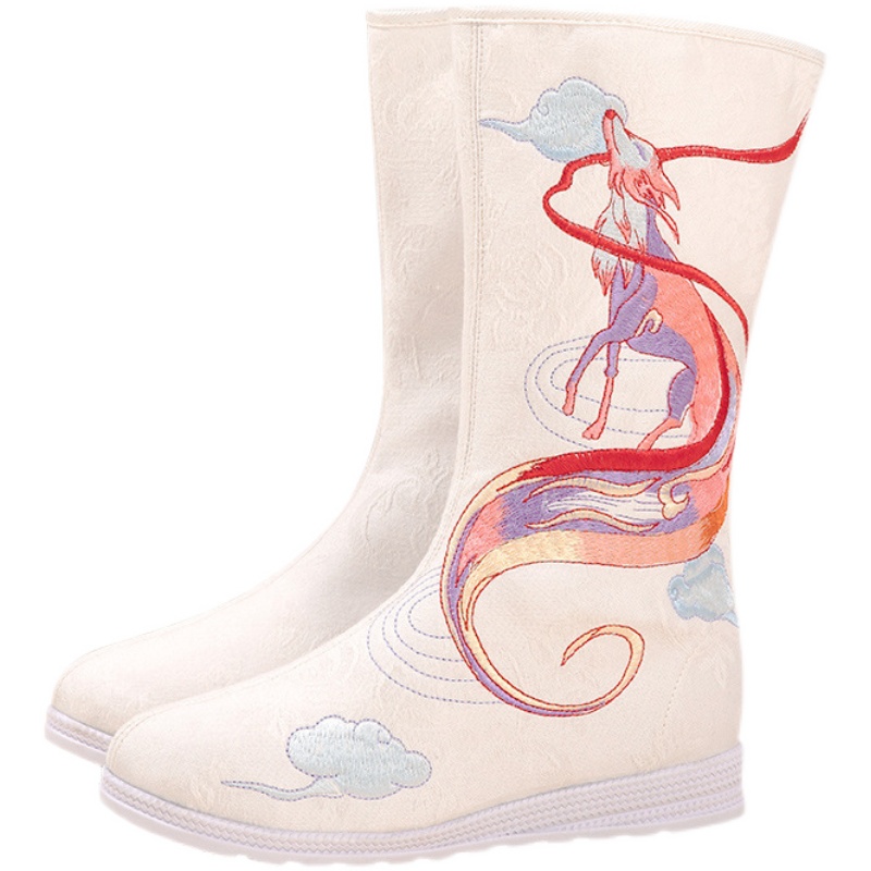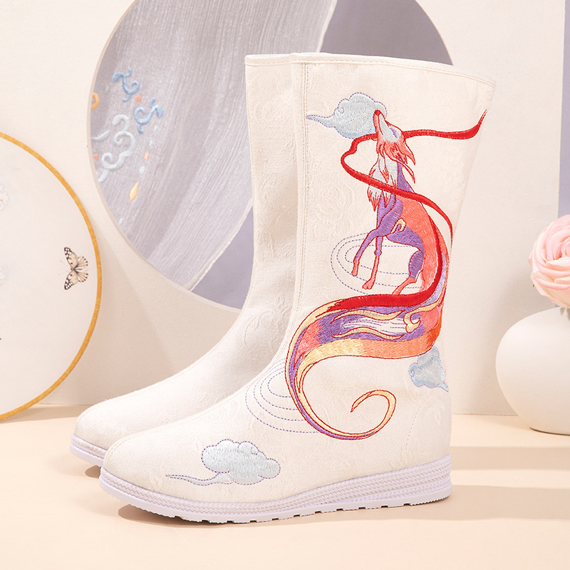 Ancient Clothing Hanfu Boots Children Soap Boots High Heel Midcylinder Boots Embroidered Thin National Wind Boots Children Ethnic Wind Boots