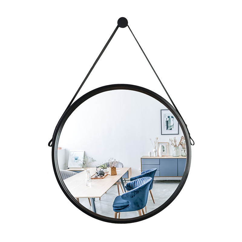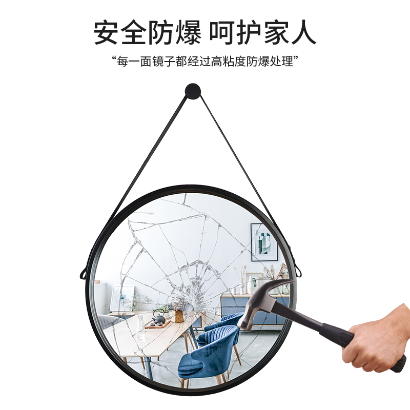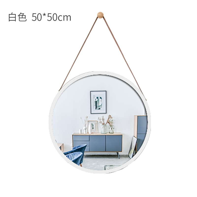 Modern Brief Mirrors Round Mirror Solid Wood Leather Round Mirror Wall-mounted Creative Bathroom bathroom mirror Bedroom Cosmetic Mirror