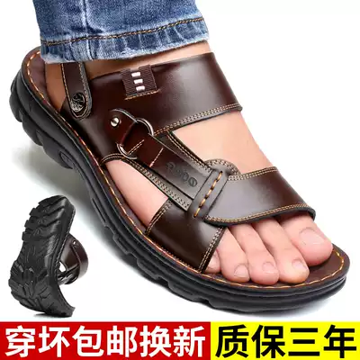 Sandals men 2021 summer new trend leather non-slip soft bottom dad wear casual beach sandals shoes