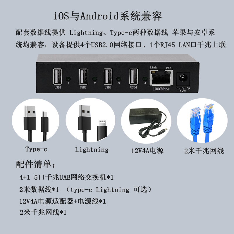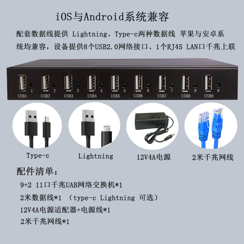 2 1 USB switch 4 1USB switch 9 2USB switch 2 meters Apple data cable 2 meters type-c data cable