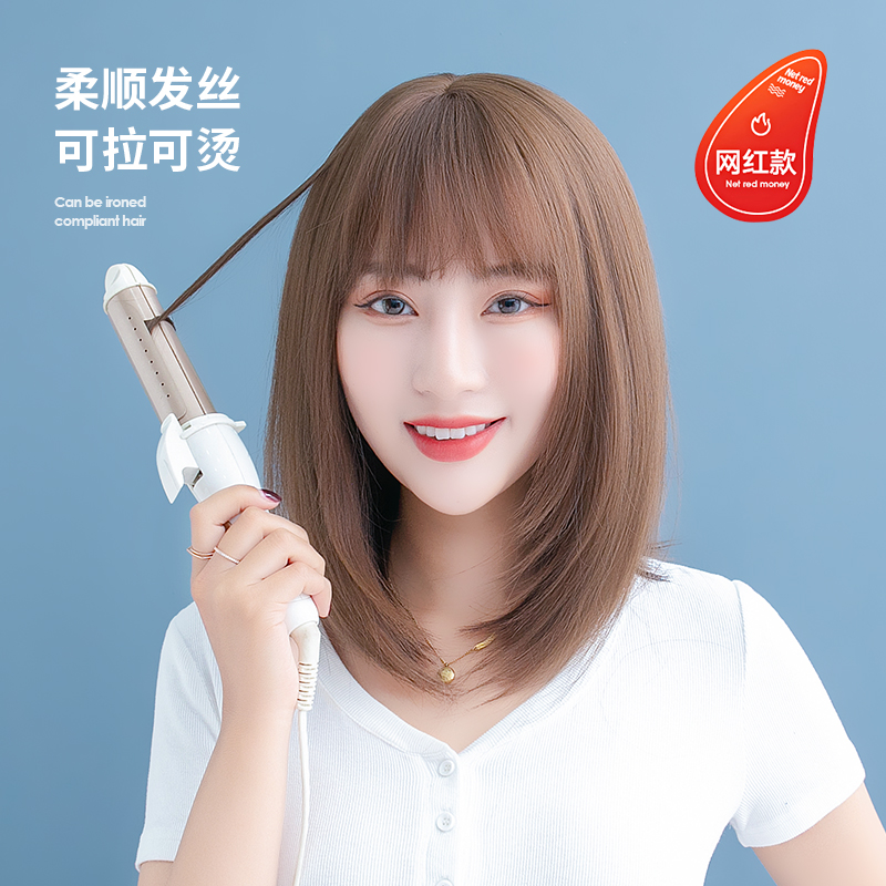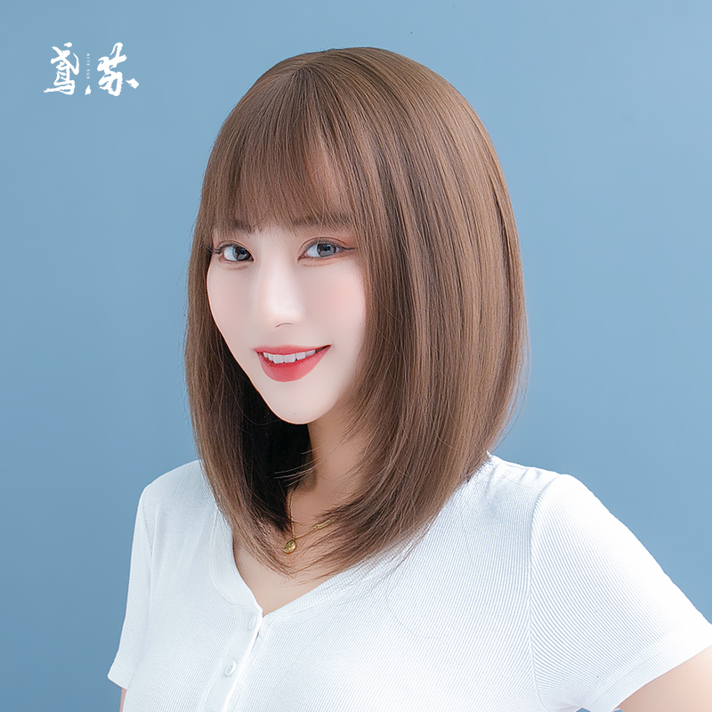 Wig women's medium long hair straight hair wig set simulation human hair short hair natural lifelike full headgear collarbone hairstyle