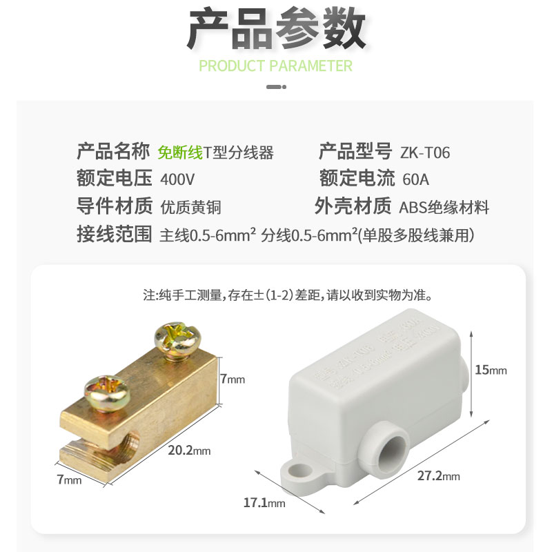 T-type splitter free of wire 6 squared tee wire gripping head wire quick wiring terminals High power ZK-T06-Taobao
