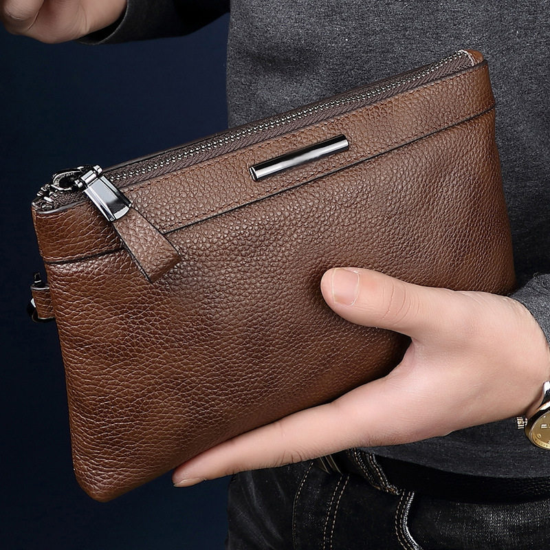 Handbag Men's Leather Clutch Large Capacity Business Casual Soft Leather Envelope Bag First Layer Leather Zipper Clutch Bag