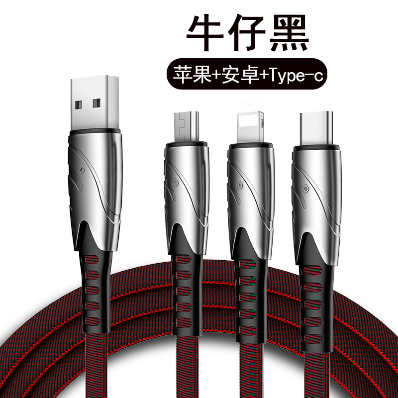 Three-in-one (denim black) 1 2m★5A super fast charging speed 99% three-in-one (denim blue) 1 2m★5A Super fast charging speed 99% three-in-one (lucky red) 1