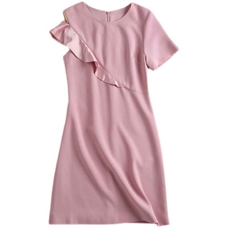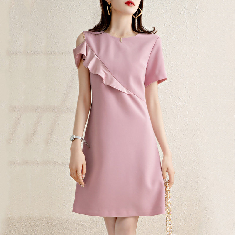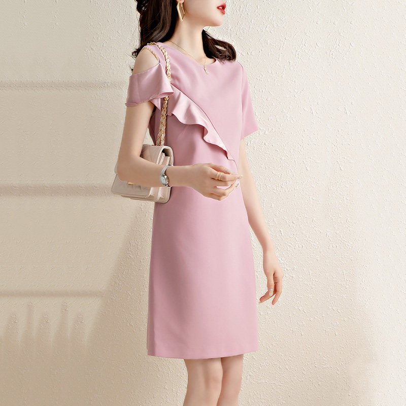 Mularsa Lotus Leaf Side Exposed Shoulder Short Sleeve Ocean Dress Woman 2022 Summer New Conspicuine Slim-to-Slim Subskirt