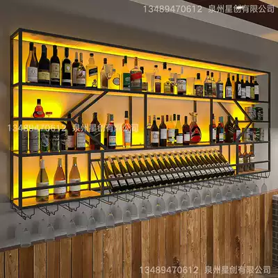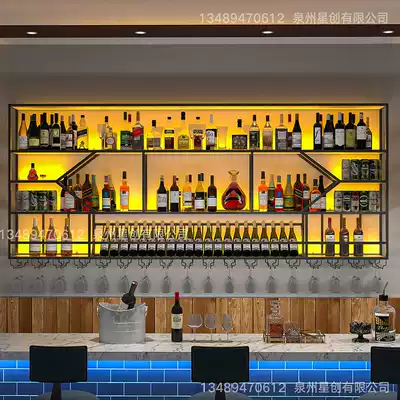 Wrought iron wine rack wall-mounted red wine cabinet display stand dining room creative bar decoration frame wall shelf customization