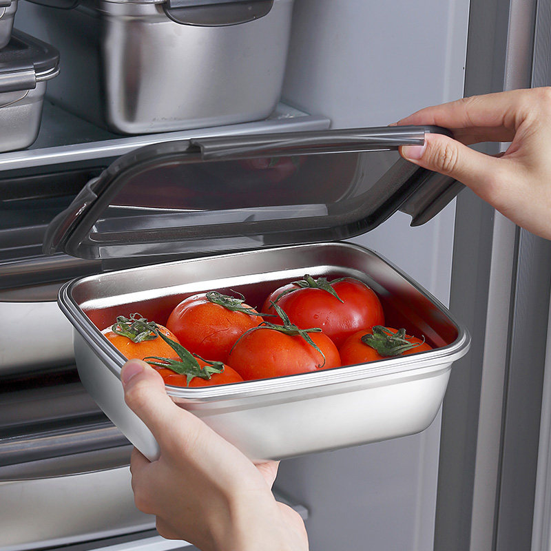 Refreshing box Large capacity 304 stainless steel seal with lid Fruit lunchbox Refrigerator Refrigerated frozen containing box