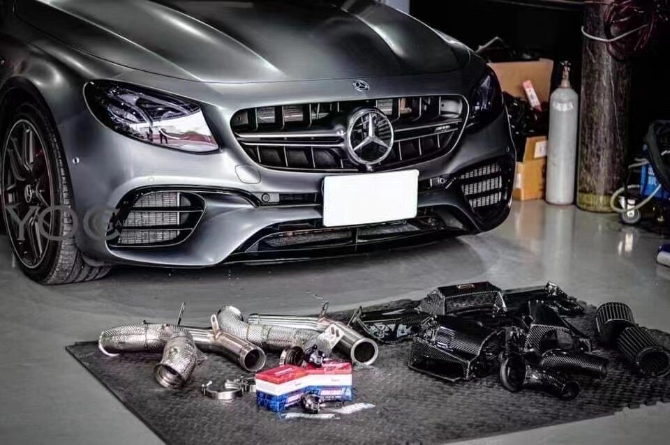 Mercedes-AMG E63 upgrade and modification head section, middle and tail section valve exhaust pipe, sports car sound wave blasting street