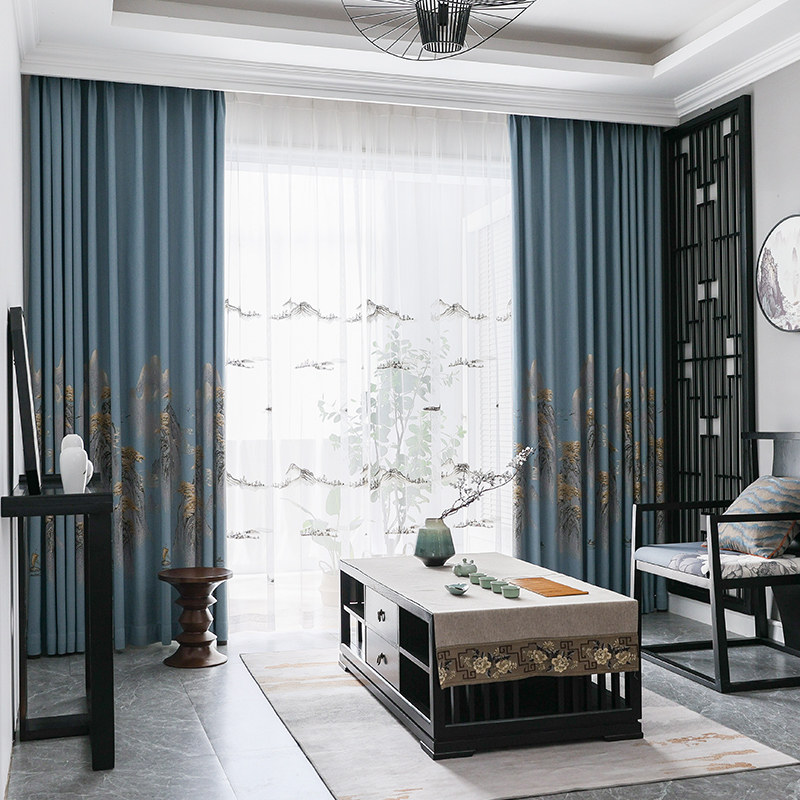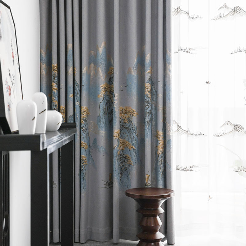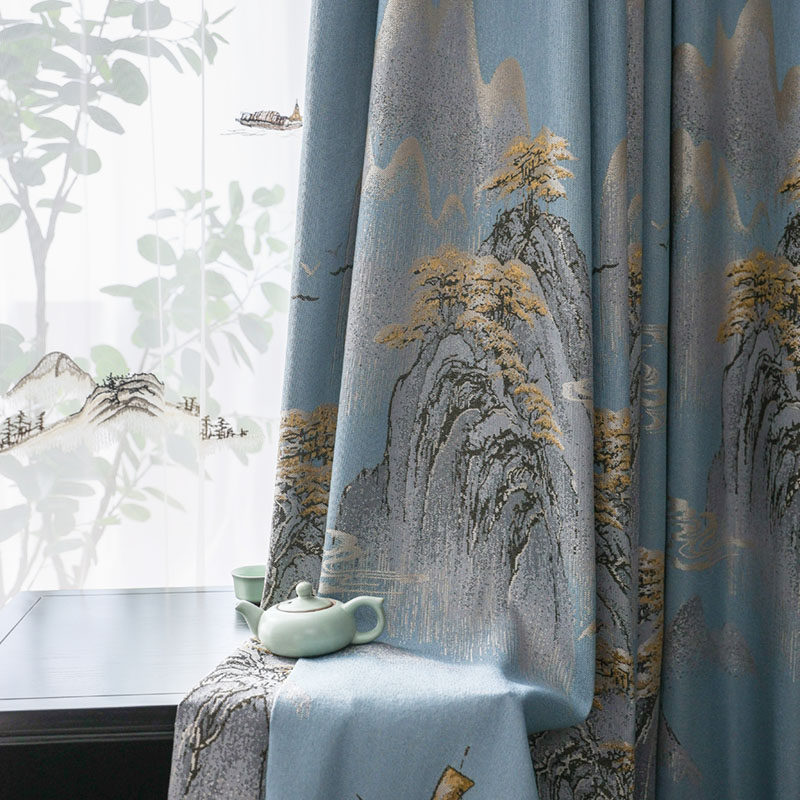 2021 new new Chinese finished products shading curtains landscape pattern color weave jacquard atmosphere book room living room