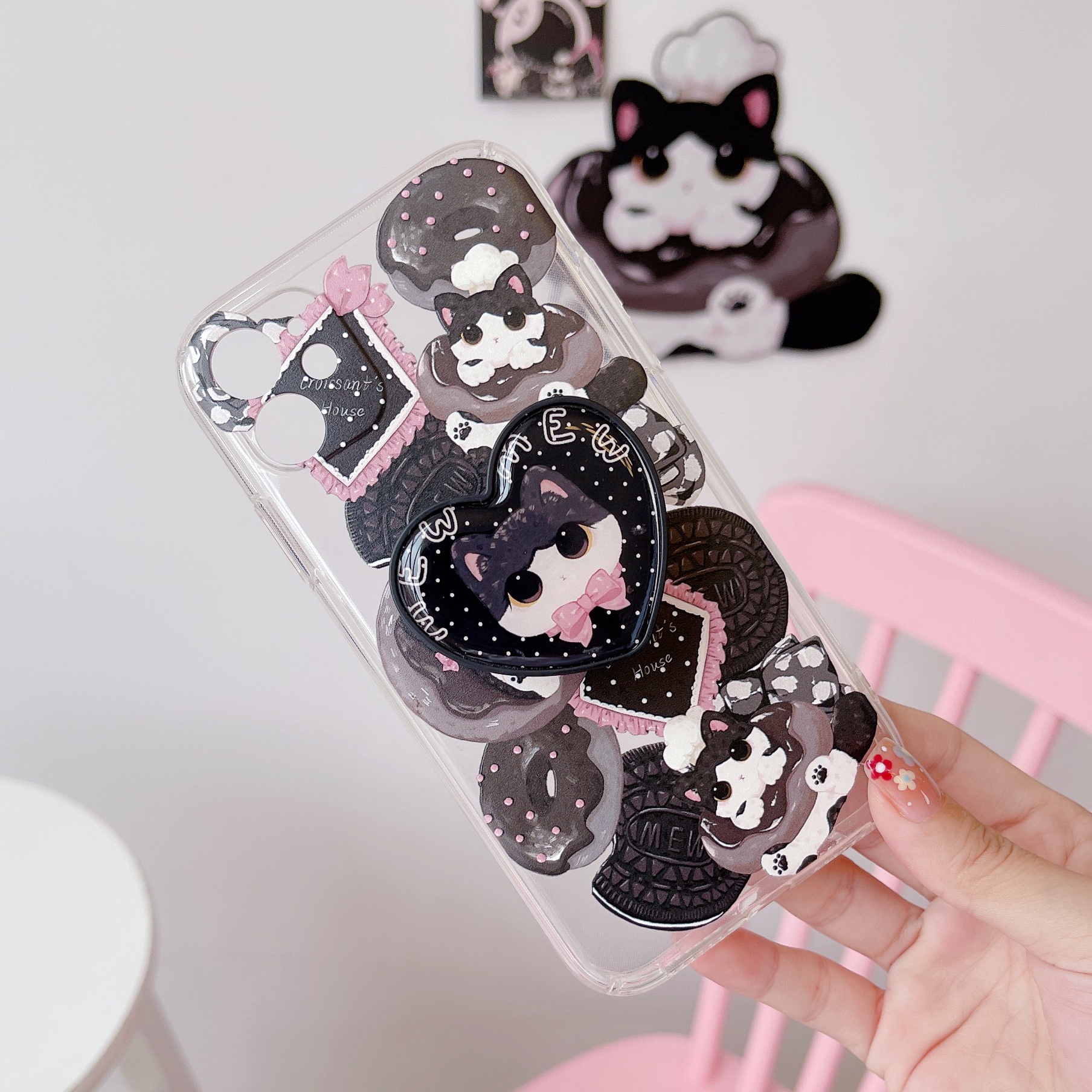 Olly Meow transparent protective case Olly Meow black edge Olly Meow transparent protective case Bracket Olly Meow black edge Stand Olly Meow transparent protective case Short lanyard Olly Meow black edge Short lanyard Olly Meow transparent protection
