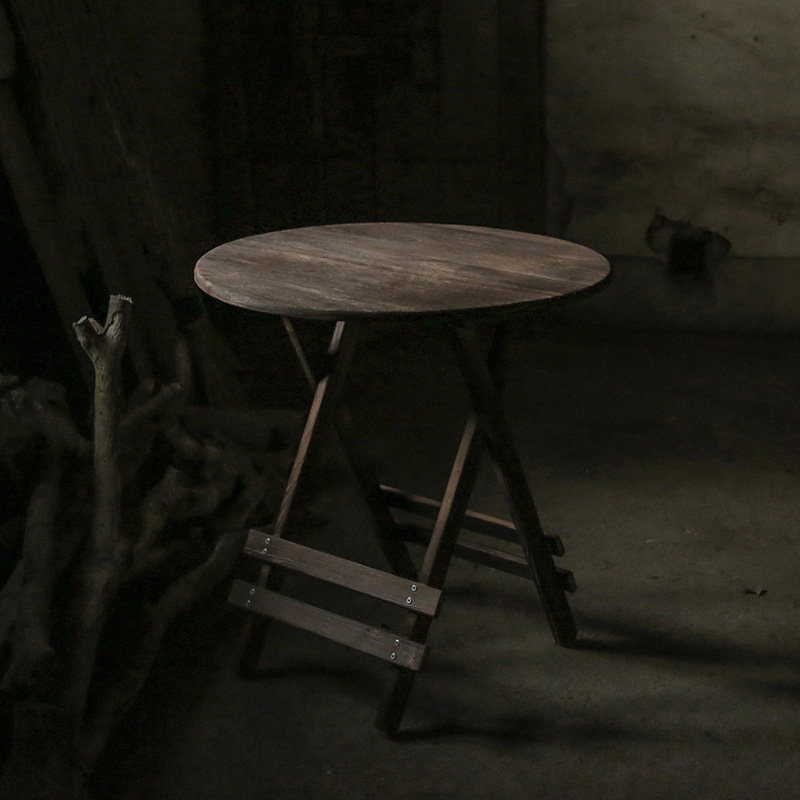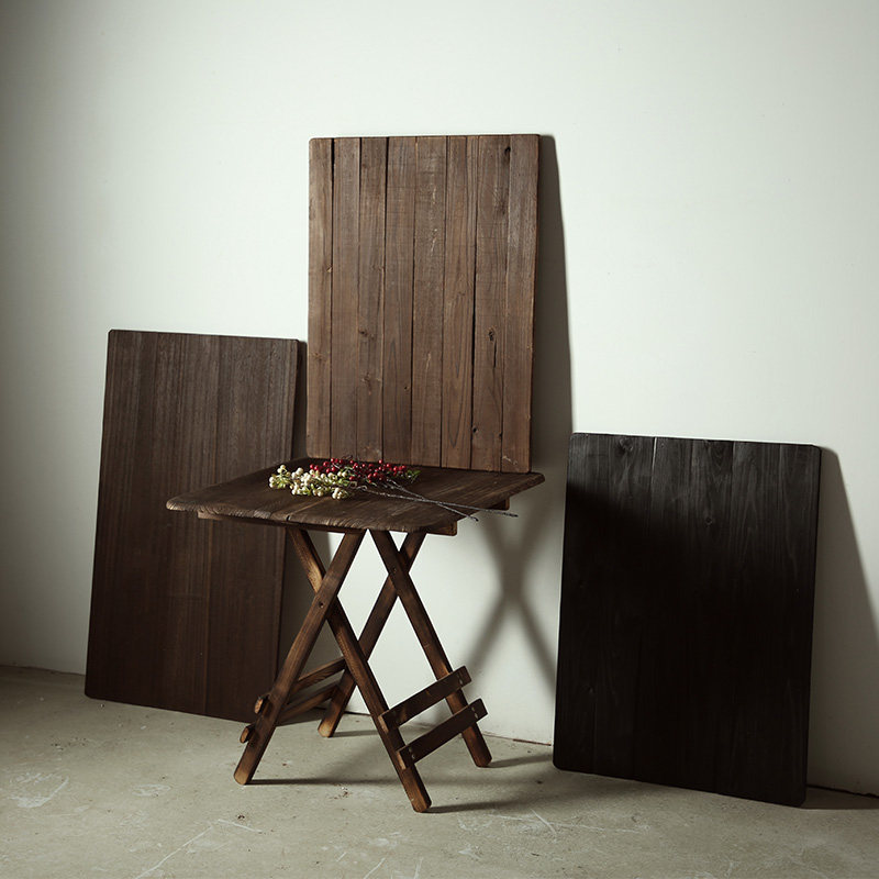 Old folding solid wood square table photography background old broken table retro still life round dining table gourmet photo props antique rustic garden decoration wood plank dark wind old plank