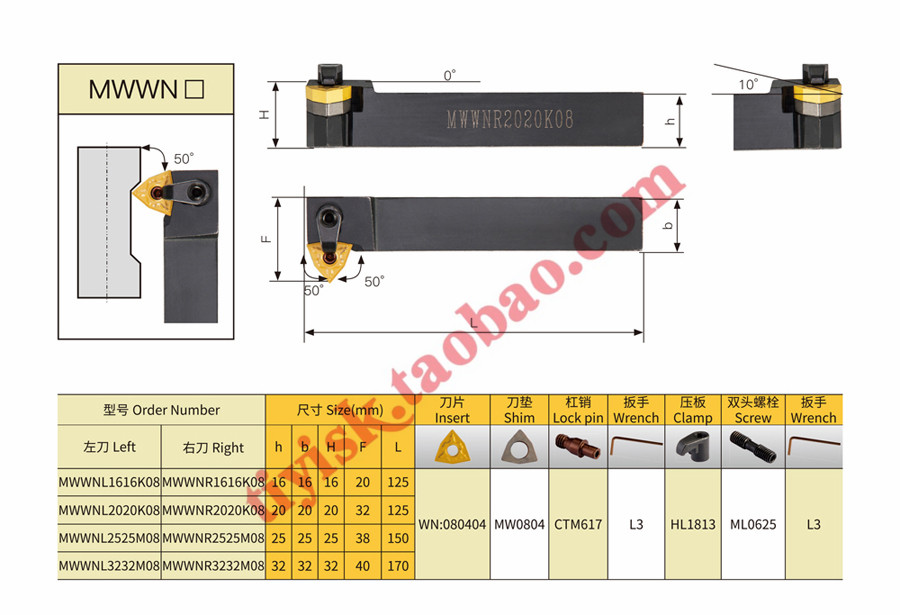 MWWNR2020K08 20 shank forward knife MWWNR2525M08 25 shank forward knife MWWNL2020K08 20 shank reverse knife MWWNL2