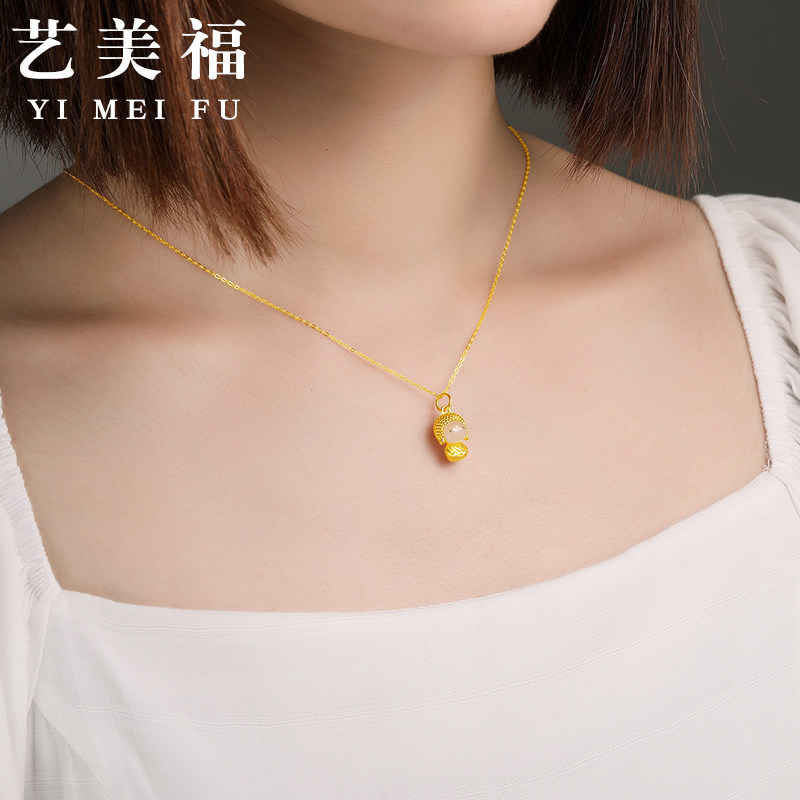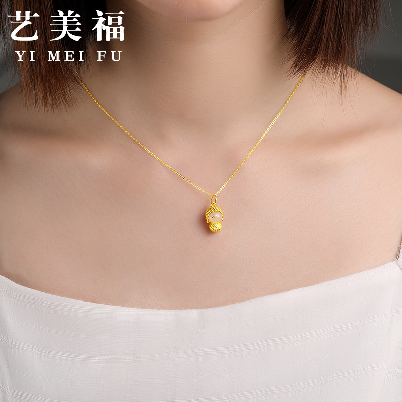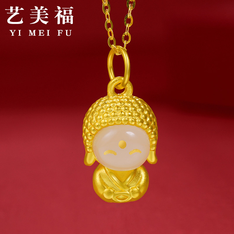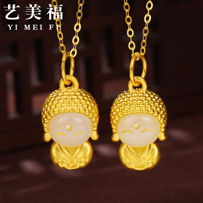 999 foot gold inlaid jade pendant gold happy jade face Buddha bifacial small cute Buddha pure gold necklace hard gold Millver-Taobao