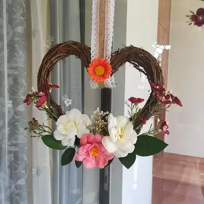 European home decoration wreath rattan heart-shaped simulation flower fake flower wedding room wedding wedding door hanging chair back decoration