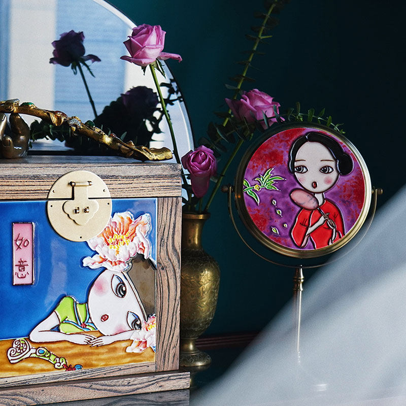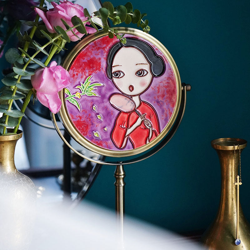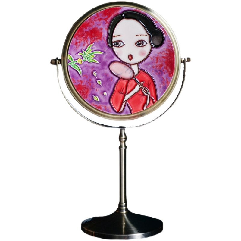 Chinese-style gentle retro creative metal desktop single-sided makeup mirror dressing room home decoration ornaments cultural and creative gifts