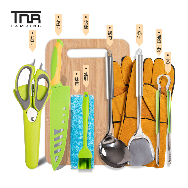 TNR outdoor camping picnic stainless steel kitchen utensils ten-piece set barbecue portable cooking multi-functional combination