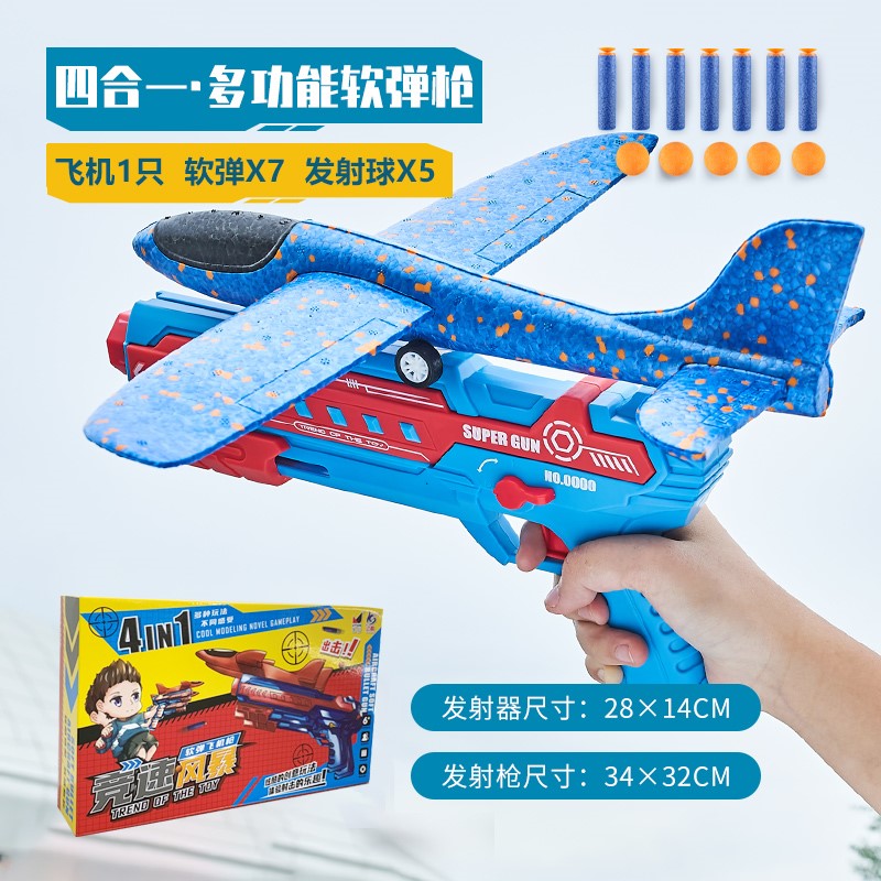 (Big Guns Capable of soft play) Blue 4 Hop 1 color boxed 1 plane (random color) (big gun bestseller) Red 4 Hop 1 color boxed 1 plane (random color) 7 soft bomb 5 balls (big
