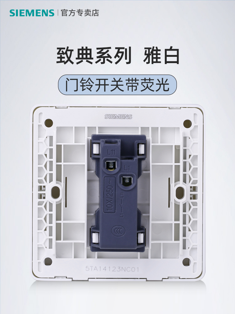 Siemens Grace 86 Type Doorbell Switch Button Home Cable 220V Switch Automatic Reset Panel Electric Bell