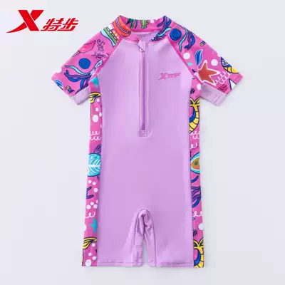 XTEP children's swimsuit Girls summer middle and large virgin girl one-piece swimsuit 2021 new cute sunscreen swimsuit