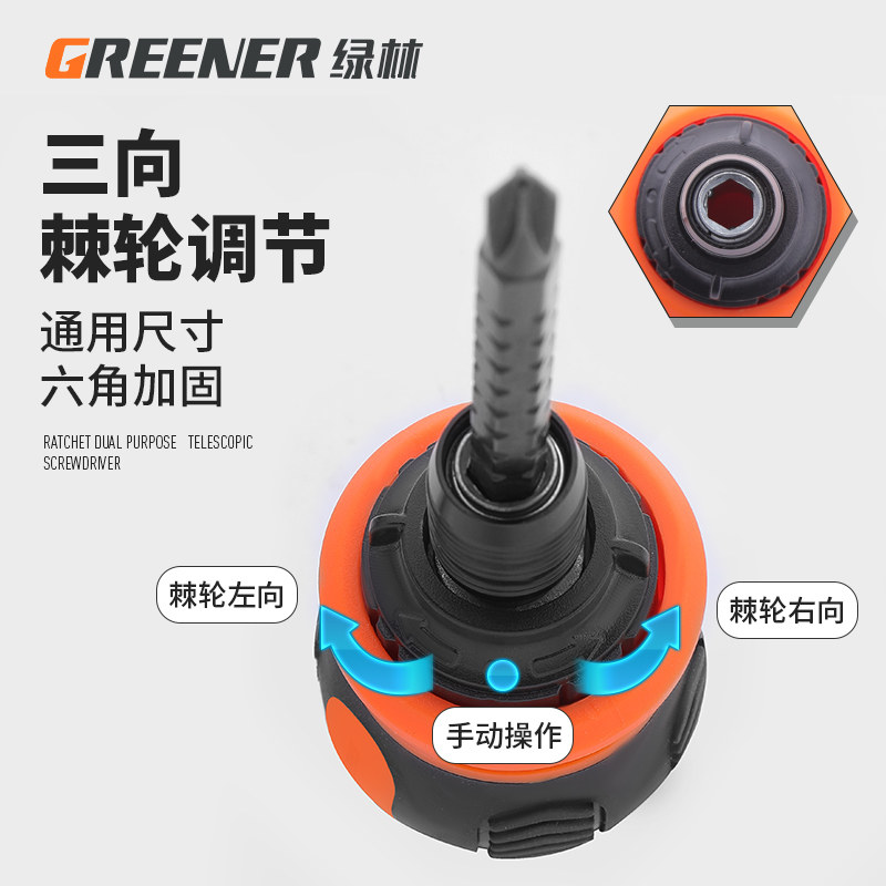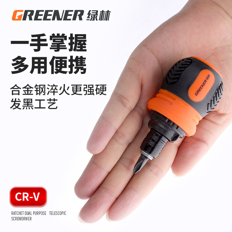 Green forest fattening ratchet screwdriver Mini I cross screw Screwdriver Batch Telescopic Labor-saving Dual-use Little Robe head opener