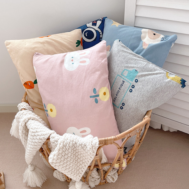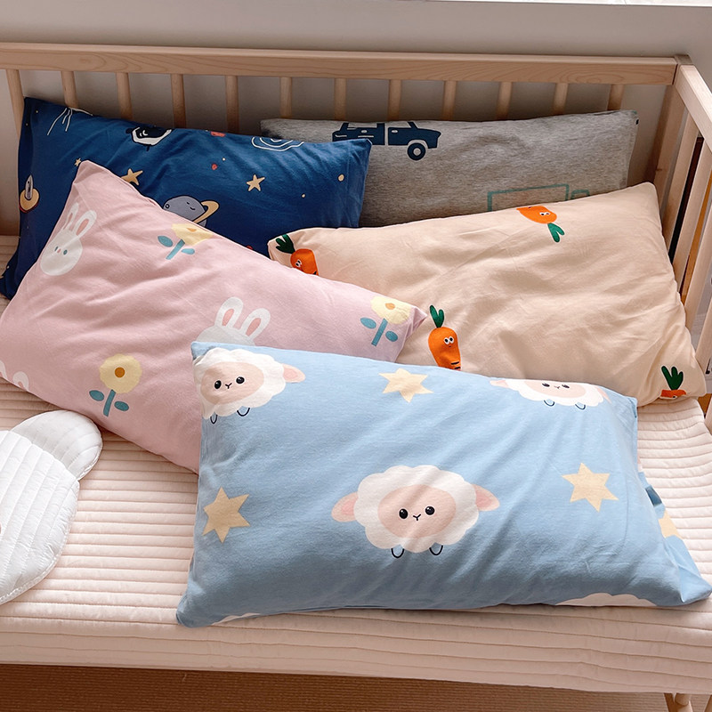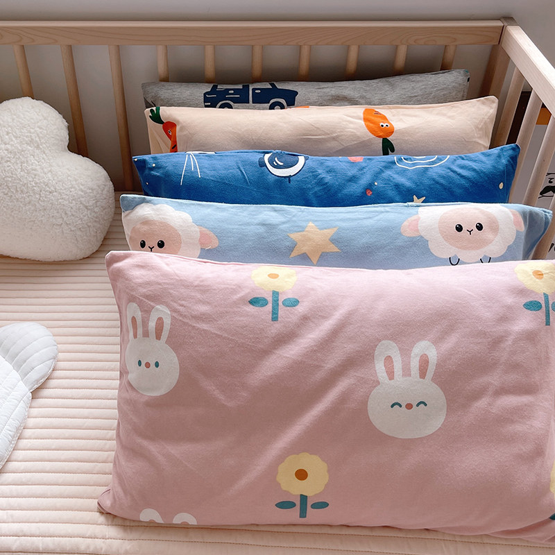 Children's cotton knitted cotton kindergarten pillowcase 30×50 cartoon cotton latex memory pillowcase baby four seasons