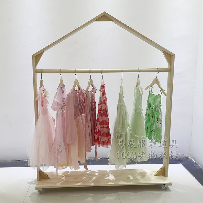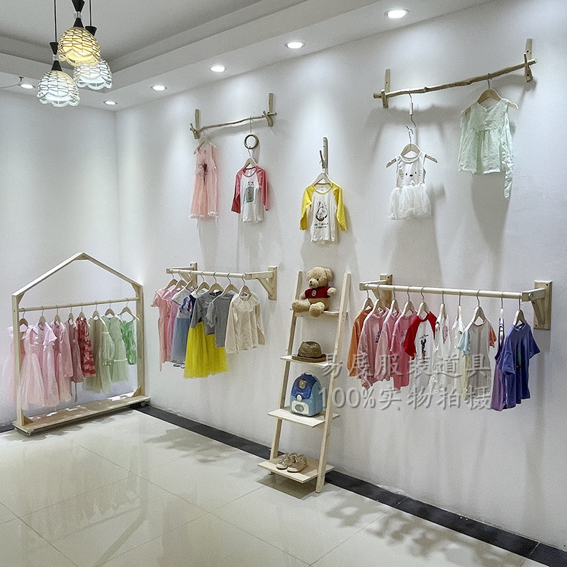 Clothing Store Display Rack Upper Wall Children Clothing Shelves Solid Wood Side Hanging Wall Upper Positive Hook Original Wood Color Floor Single Lever Hanger