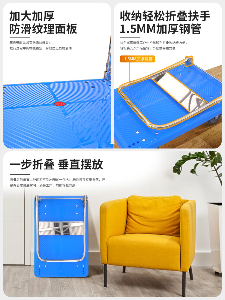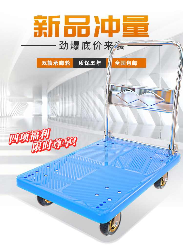 Silent 4 inch hand - pulled car supermarket pull cart cart with a portable folding car for household handling cart