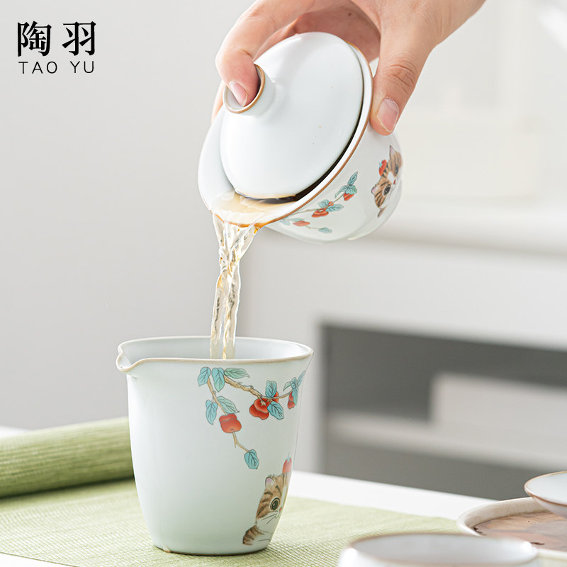 Song Song Ruku-Like Cat-Like Song Ruku-Ling Cat-Hang Cat-2 Pieces of Ruku Tea Kettle Set Meng-2 Pieces of Ruku Tea Kettle Set-5 Pieces of Ruku Tea Kettle Set Meng Cat