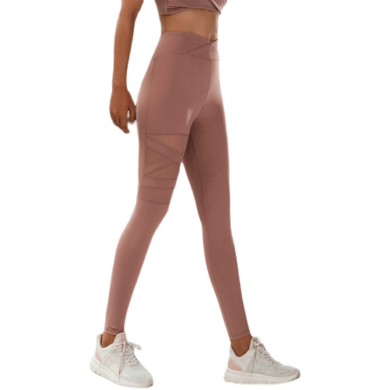 2021 new European and American cross-border nude yoga pants women's quick-drying fitness running sports hip-lifting trousers without embarrassing lines