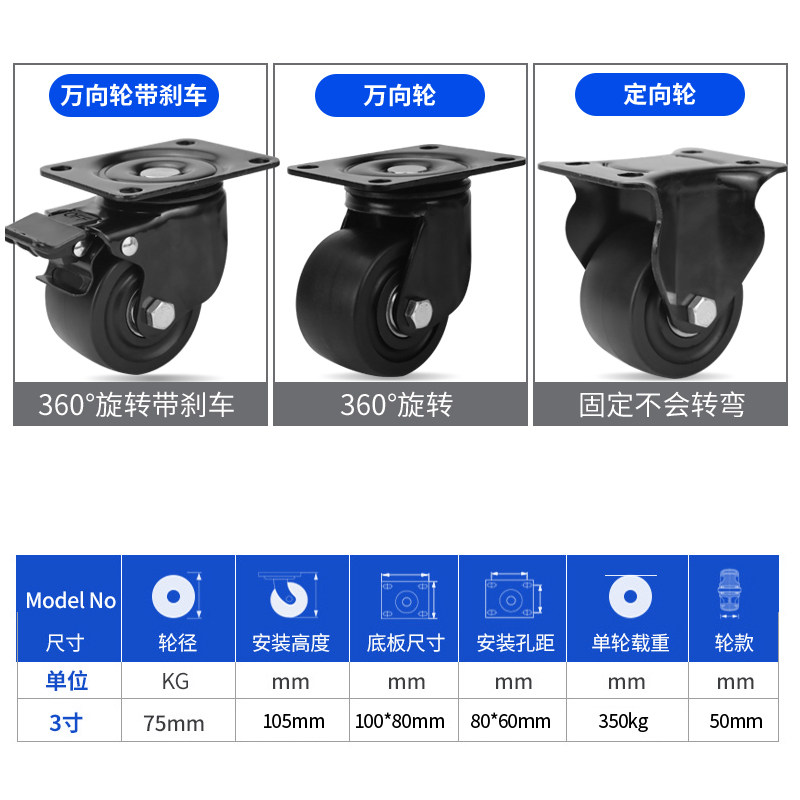 3 inch low - gravity caster industrial load machine brake wheel wheel wheel black vector wheel