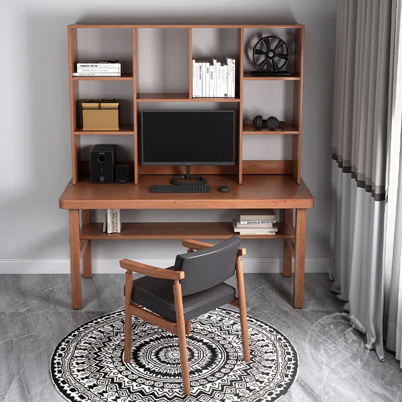 Nordic solid wood desk bookshelf integrated table simple modern home computer desk single bedroom small apartment desk
