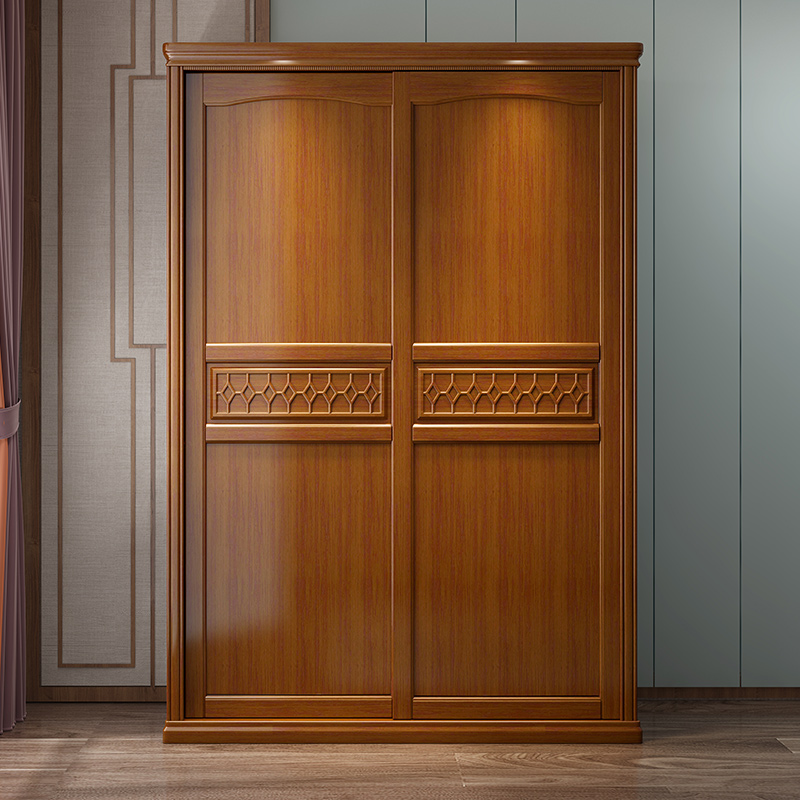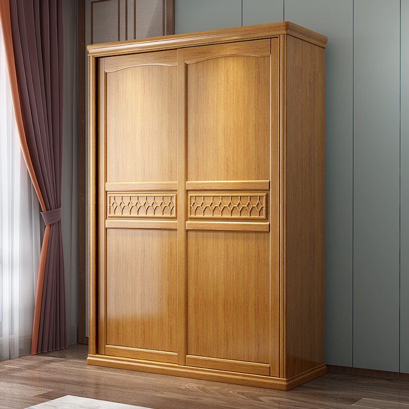Sliding door all solid wood wardrobe modern minimalist bedroom storage cabinet economical Chinese style log wardrobe furniture - Taobao