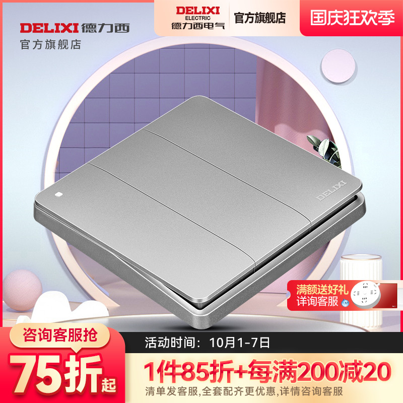 Delixi official flagship store three-open double-cut switch socket bedroom living room light control panel 821 Xinghui silver