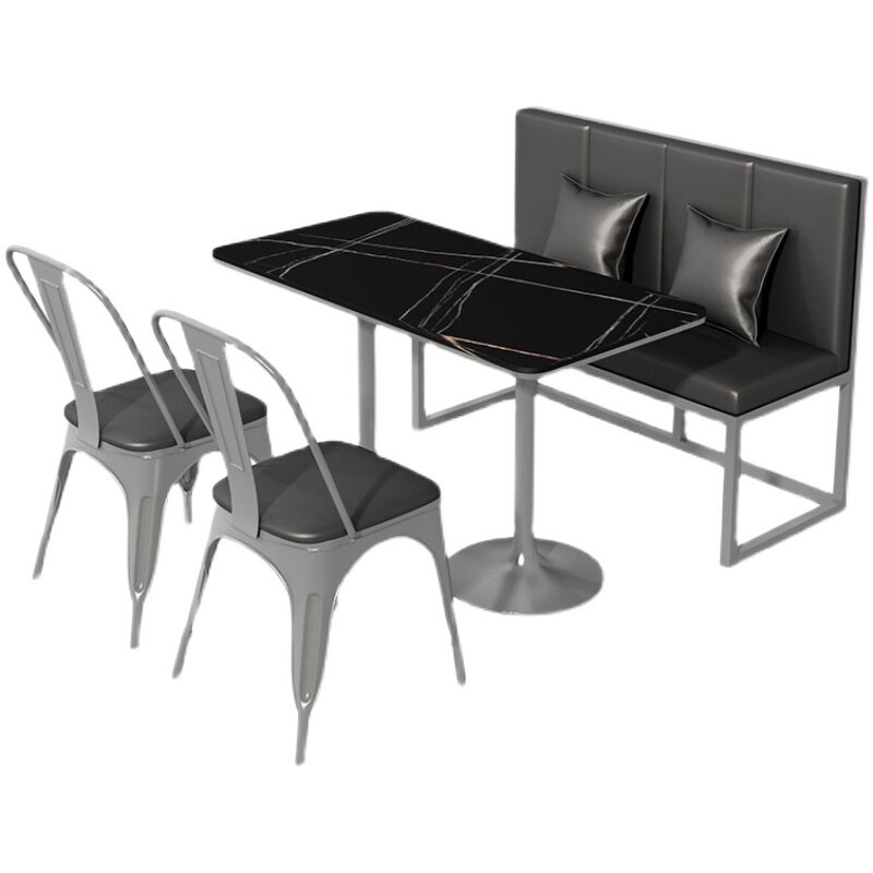 Customized Western Restaurant Leisure Iron Coffee Card Seat Simple Cafe Bar Rectangular Rock Plate Table and Chair Combination