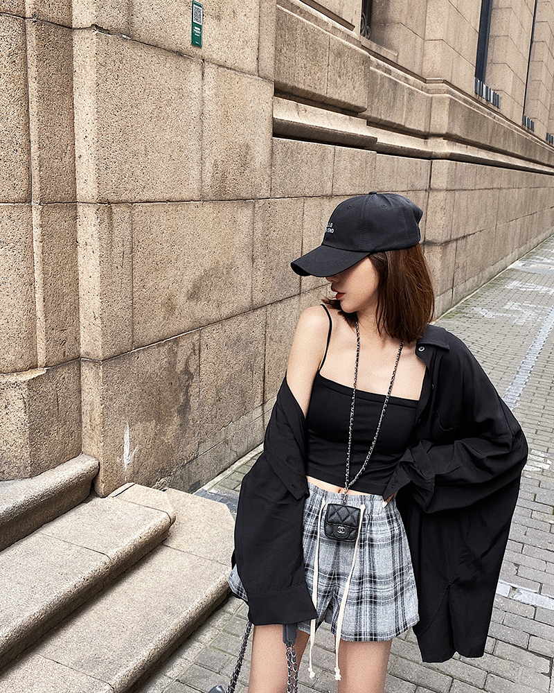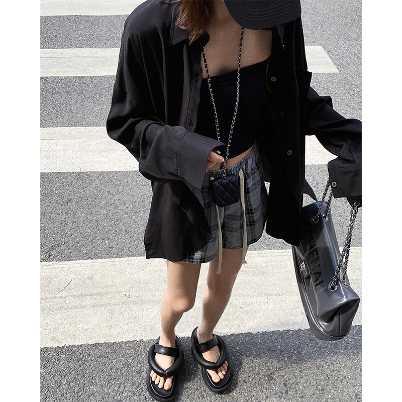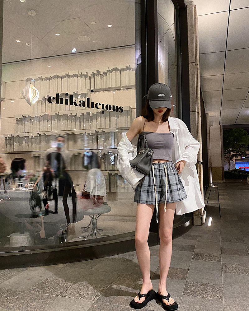 Xiao Nian custom private clothes summer new loose five-point shorts high waist and thin a-line plaid suit wide-leg shorts